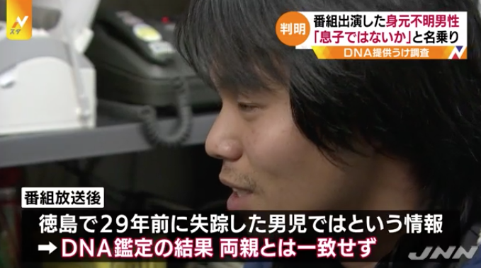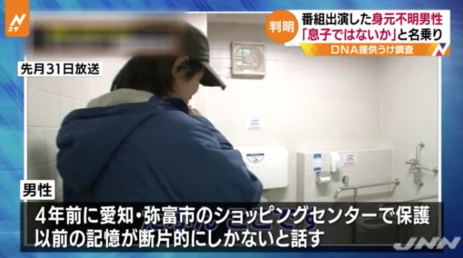 先月、JNN系列の公開捜索番組に出演した身元不明の男性は、三重県四日市市の28歳の男性とみられることがわかりました。