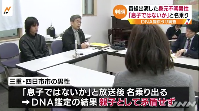「息子ではないか」と名乗り出た四日市市の男性らからDNAの提供を受け調べたところ、「親子として矛盾しない」という結果が出たことが、9日、関係者への取材でわかりました。