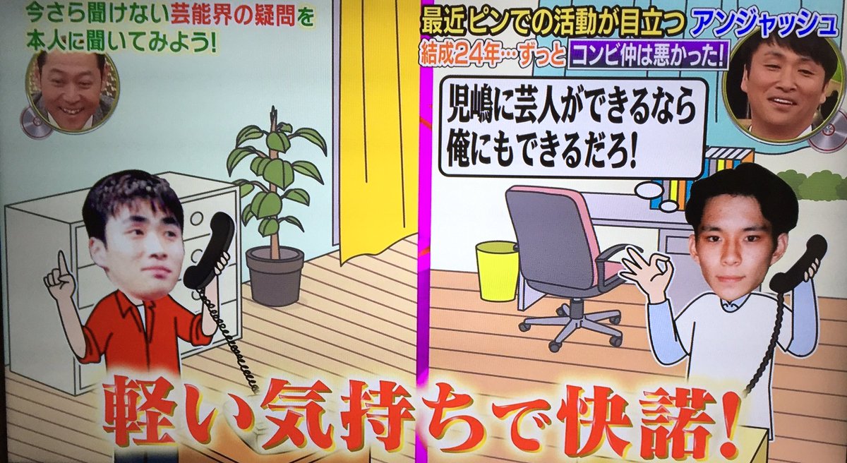 その時“面白そう”だと思い、お笑いコンビ『アンジャッシュ』を結成し、お笑い芸人専門の事務所“人力舎”の養成所スクールに入学。