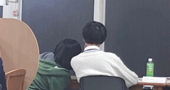 矢作萌夏さんと文春での相手は、学校内でも自習室で肩を寄せ合い、親密な様子。