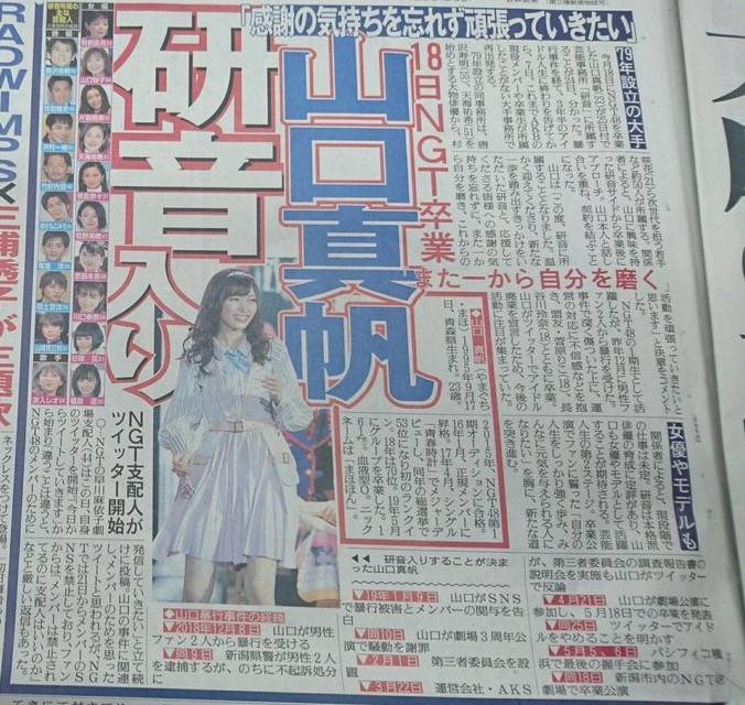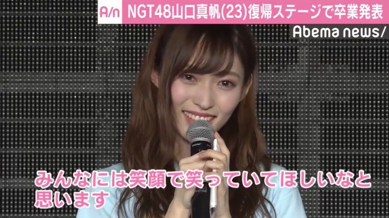 2019年5月18日、NGT48劇場で行われた公演を最後に、山口真帆さんはNGT48を卒業。