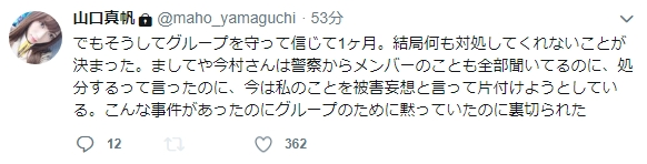 これでこのまま真帆を助けずに情報流したメンバーことも解雇せずに、真帆がNGTをやめることなったらこの後だれもあなた達を信じないし、NGTを推せないとおもいます。