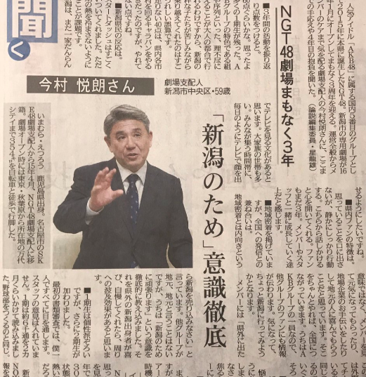 今村支配人はAKBグループの劇場支配人としては最高齢の66歳だそう。