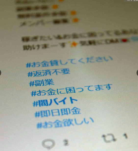 闇バイトはツイッター上で蔓延中?#闇職や#裏仕事などのハッシュタグも