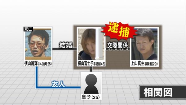 麗輝さんと富士子容疑者は夫婦間のトラブルを抱え、離婚話も出ていて、富士子容疑者に至っては当時、上山容疑者と交際中だったとのこと。
