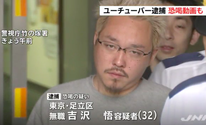 引用元:【足立区】32歳男(職業・ユーチューバー)を逮捕 カラオケ店員を脅して代金踏み倒す様子を動画サイトで生中継していたという
