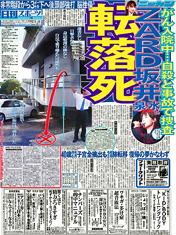 非常階段から転落したということで、自殺と事故の両面で調べられたようですが、所属事務所は事故死と発表。